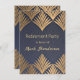 Convite de festas da aposentadoria com teste padrão frondoso dourado da decoração da arte em um fundo azul escuro. A cor do fundo pode ser mudança.