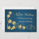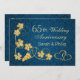Conjunto de folhas de videira coloridas de dourado e corações unidos contra um fundo de damasco azul Convite para Festa de Aniversário de Casamento de 65 anos