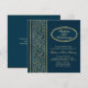 Convite de 50º aniversário de casamento com folhas douradas em fundo azul escuro. Fácil de personalizar - altere a fonte, cor, tamanho e coloque o ano da celebração.