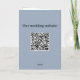 Este belo cartão anuncia o seu casamento com estilo. O fundo azul discreto apresenta um padrão de folhas sutil e elegante e é perfeito para qualquer época do ano. Totalmente personalizável, basta carregar a sua foto para o topo do convite e inserir os seus detalhes. Se você tiver um site de casamento, certifique-se de substituir o campo do código QR pelo endereço do seu site. Este cartão é dobrável, com o interior em branco para você adicionar mais fotos ou detalhes do convite. Procure também por cartões de "Salve a Data" correspondentes. Feito para qualquer casal. Disponível como produto impresso ou download digital, ou encomende ambos.