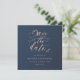 Projetado para combinar com nossa coleção de Folhas Rosa e Azul Marinho, este convite personalizável de save the date quadrado apresenta save the date em rosa bege em uma fonte de caligrafia com folhas em um fundo azul marinho. Para personalização avançada deste design, por exemplo, alterar o layout, fonte ou tamanho do texto, clique no botão "PERSONALIZAR" acima.