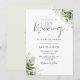 Este convite de casamento de folhas de verde botânico elegante pode ser personalizado com suas informações em tipografia chic com suas iniciais de monograma no verso. Projetado por Thisisnotme©