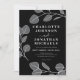 Convite de casamento cinza e preto com folhas de eucalipto elegantes e bonitas com folhas cinzas e detalhes de arte de linha branca em um fundo cinza ardósia. Um convite de casamento de folhagem simples e moderno, design minimalista chique perfeito para um download imprimível de diy botânico ou convite de casamento impresso moderno. Modelos fáceis de usar com tipografia elegante branca em script em um fundo azul. Desenho de verde minimalista único, simples e estiloso e convite de casamento personalizado criado por artista. Arte original da artista Catherine Sweetman