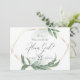 PROPOSTA DE CONVITE PARA FESTA DE NOIVA | Formas geométricas com folhas verdes tropicais elegantes modernas. O verso é uma cor coordenada complementar. Personalize o texto, estilo de fonte, cor e tamanho. Arte original criada para a BarefootBride™ por © WhimsicalArtwork™ - Esta é parte de uma Suíte de Papelaria de Casamento completa com papelaria de casamento, chá de bebê e outros eventos.
