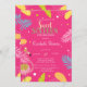 Esses convites apresentam flamingos cor-de-rosa e folhas tropicais sobre fundo cor-de-rosa. Este convite é facilmente personalizado para o seu evento simplesmente adicionando os seus detalhes.