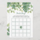 Estes cartões de jogos de bingo de chá de panela, elegantes e elegantes apresentam monstera aquarela, fig de folha violeta e folhas de videira pothos a verde sobre um simples fundo branco. O moderno script manuscrito em verde também é apresentado.