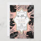Convite Folhas Tropicais Pretas e Coral Rosa Dourado Casam