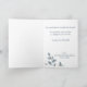 Folheto de convite dobrado com folhas verde-azul desenhadas à mão e bagas pseudo douradas claras. Eleve a celebração do seu graduado com um toque encantador. Todo o texto pode ser personalizado de acordo com o seu gosto. Perfeito para todos os tipos de convites de eventos especiais.
