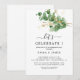 Fresca e elegante, este convite de folhas verde-claras e folha de ouro "Vamos Celebrar" é perfeito para qualquer ocasião alegre. O design apresenta folhas verde-claras em aquarela macia combinadas com delicados acentos de folha de ouro falsa, criando um visual leve e sofisticado. Ideal para casamentos, aniversários, chá de bebê, ou eventos marcantes, este convite é totalmente personalizável para se adequar à sua celebração única.