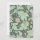 O texto é escrito em uma oval verde-claro, com borda dourada, com letras douradas, exceto os nomes, que são verdes. A ocasião "Casamento" é escrita em uma fonte caligráfica, o resto em maiúsculas.