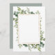 Este convite em branco apresenta folhagens de eucalipto pintadas com aquarela, folhas verdes e uma moldura retangular em dourado falso.