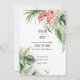 Convite Folhas verdes tropicais e flores de antúrio rosa