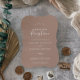 Este convite de recepção de casamento minimalista com folha neutra é perfeito para uma festa pós-casamento boho. O design apresenta uma silhueta simples de folha de verde em um tom natural terroso com estilo desértico boêmio minimalista. Cartões de RSVP são vendidos separadamente, ou você pode adicionar informações de RSVP no verso do cartão.