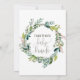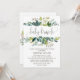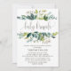 Este cartão de convite para o bebê da folhagem é perfeito para um chá de fraldas rústico. A design apresenta uma fuselagem de folhas verdes e botânicos com folhas verdes. O apoio apresenta uma coroa de coroa correspondente que pode ser personalizada com o nome da futura mãe.