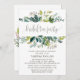 Este cartão de convite de festas de chá de folhagem é perfeito para um chá de panela rústico. A design apresenta uma fuselagem de folhas verdes e botânicos com folhas verdes. O apoio apresenta uma coroa de país correspondente que pode ser personalizada com o nome da noiva a ser.
