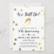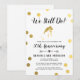 Um convite simples e elegante para uma celebração de aniversário de casamento. Pontos de fólio dourado rodeiam a silhueta de uma noiva em fólio dourado. As cores do fundo e da fonte podem ser alteradas para combinar com o tema do seu evento.