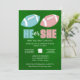 Kick off the excitement with this playful football-themed gender reveal party invitation! Featuring a rich green field background, two adorable footballs in soft blue and pink, and bold “He or She” lettering, this design is perfect for sports-loving parents and fun-filled celebrations. The clean, modern layout makes party details easy to read while keeping the look festive and charming.