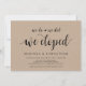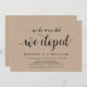 Este cartão de convite temático Rustic Farm Kraft (Nós nos casamos, nós nos casamos, nós fugimos) é perfeito para a celebração do seu casamento / festa de anúncio de casamento. Adicione seus detalhes na fonte / letra preta correspondente.