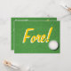Um convite de aniversário de golfe divertido para o Golfer especial. "Fore!" na frente, "Celebre mais um ano a acordar do lado direito do Verde", atrás. É bom estar do lado direito do verde.