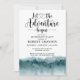 Que a aventura comece a aquarela das montanhas da floresta convite de festas de aposentadoria. Tema russo. Aquarelas verdes azuis.