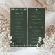 Bem-vindos aos seus convidados com graça e estilo com este programa de cerimônia de casamento de Art Nouveau. A frente e o verso desse programa apresentam um fundo verde-floresta cativante, adornada com uma ilustração botânica de flores estilizadas e folhas em tons de creme e de sábio. A elegante letra da escrita, usada para detalhar os procedimentos e a festa de casamento da cerimônia, reforça a elegância histórica da peça, lembrando o movimento artístico do início dos anos 1900 que celebrava formas e curvas naturais. O programa esboça a sequência da cerimônia desde o prelúdio ao reino, incluindo os nomes da festa de casamento e uma mensagem especial de obrigado que você faz, tudo emoldurado pelos motivos florais encantadores que evocam uma era passada de romantismo e beleza.