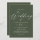 Convites de casamento verdes escuros com roteiro de caligrafia. Moderno com um sentimento clássico.