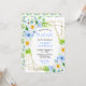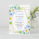 This fun and whimsical birthday party invitation features watercolor blue forget me nots, daisies and foliage on a gold geometric frame. The text combines handwritten script and serif fonts for a stylish and modern look. This is perfect for a spring or summer rustic birthday party.