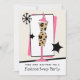 Um convite de festas inspred retro da troca da roupa de forma do vintage dos anos 50 que caracteriza uma ilustração de um rosa e de um formulário do vestido do impressão do leopardo. Estrelas decorativas na parte dianteira e na parte traseira. Personalize o texto na parte dianteira e na parte traseira.