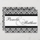 O convite formal branco e preto deste damasco bonito é completamente customizável. O design do cobrir tem o grande texto para os nomes dos noivos e o verso tem a abundância da sala para sua informação do casamento. Não esqueça os acessórios de harmonização!
