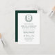 Convite Formal Emerald Green Leafy Crest Monograma Casamen