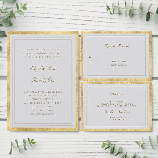 Convite Formal Modern Classic Elevated Gold Ivory Wedding