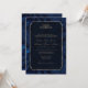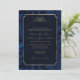 Convites de casamento elegantes em um estilo mais formal com um layout clássico de quadros dourados e texto com uma borda ornamentado paisley. Este exemplo adiciona um toque moderno com o seu fundo em paisley azul-marinho da moda. Adicione os detalhes do evento em uma fonte de serifa para seu recurso tradicional. Procure ID767 para ver outras opções de cores para este design.