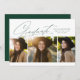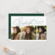 Este anúncio e convite para a graduação de três fotos é a forma perfeita de celebrar seu formando. Com um roteiro moderno e elegante "formando" em verde escuro e sublinhado, esse design também oferece espaço para personalização, incluindo nome, escola e ano. A parte traseira é um marinho azul correspondente com um padrão traço sutil para corresponder ao sublinhado na parte frontal e inclui espaço para texto de convite de festa de formatura. Este anúncio de graduação verde na moda funciona bem para um formando segundo grau ou um formando universitário. Outras cores e estilos escolares disponíveis na coleção.
