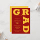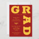 FORMANDO em curvas de letras douradas em negrito amarelo ao redor das bordas desses convites de festa de formatura vermelha cardinal. VEJA A COLEÇÃO INTEIRA de cores pré-feitas, placas de papel, guardanapos, e muito mais em nossa loja.