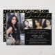 Convite para festas de formatura preto, dourado e branco moderno com 4 fotos e elegante tipografia de guiões de ouro manuscrito em champanhe. ASSISTÊNCIA: Para obter ajuda com a modificação ou personalização do design, transferindo o design para outro produto ou, se você quiser coordenar itens, entre em contato com o designer ANTES DE PEDIR por meio do Zazzle Chat ou makeitaboutyoustore@gmail.com.
