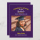 Parabéns Ao Nosso Formando. Um simples design de fotografia e tipografia personalizada para celebrar a conquista de um ente querido que se formou no segundo grau ou na faculdade. Substitua a imagem por uma imagem horizontal do formando. Os textos em amarelo e branco podem ser personalizados e personalizados com o nome e a classe do formando e seu segundo grau ou faculdade. Se você não estiver satisfeito com as fontes manuscritas e de script, poderá alterá-las usando a Ferramenta Design. Você também pode alterar a cor da fonte e a cor de fundo roxa. O design de celebração especial é seu para personalizar e personalizar como quiser.