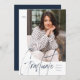 Comemore seu formando com este anúncio e convite modernos de graduação de fotos em um esquema de cores azul e branco marinho. Apresentando uma forma de foto única com uma borda curva na frente, este anúncio de graduação também tem um ousado script moderno "formando" e texto personalizável para nome e ano. O marinho back apresenta o texto do convite junto com um script correspondente "Junte-se a nós para celebrar o formando!" Este anúncio e convite originais do formando de Lea Delaveris Design faz parte de uma coleção de anúncios de graduação, suprimentos partidários, decoração, presentes e muito mais. Encontre mais estilos e cores na coleção. Também disponível como download de anúncio de graduação digital!