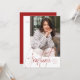 Comemore seu formando com este anúncio e convite modernos de graduação de fotos em um esquema de cores vermelho e branco escarlate. Apresentando uma forma de foto única com uma borda curva na frente, este anúncio de graduação também tem um ousado script moderno "formando" e texto personalizável para nome e ano. O vermelho apresenta o texto do convite juntamente com um script correspondente "Junte-se a nós para celebrar o formando!" Este anúncio e convite originais do formando de Lea Delaveris Design faz parte de uma coleção de anúncios de graduação, suprimentos partidários, decoração, presentes e muito mais. Encontre mais estilos e cores na coleção. Também disponível como download de anúncio de graduação digital!