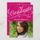 Um fundo cor-de-rosa brilhante, fúcsia, com um texto cinza branco, com "formando", e um ano personalizado, excelente para o formando anunciar a grande conquista. Celebre no verso com texto de evento personalizado para seus convidados. Todos os Designs Copyright © www.CustomInvitesOnline.com