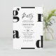 Comemore o novo formando com este convite para festas de formatura moderno e chique. O design apresenta a palavra "formando" distribuída ao longo do convite em tipografia em negrito, e todas as informações da parte abaixo, o design é terminado no sentido inverso com um fundo preto e um espaço modelo extra para uma mensagem. Personalize o modelo com os campos fornecidos ou clique em personalizar para mais opções. Se você precisar personalizar o tamanho da fonte ou o espaçamento, vá para personalizar ainda mais. Precisa de peças ou cores adicionais que não estejam na coleção? Entre em contato comigo usando o botão de contato abaixo.