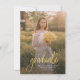 Adicione a sua foto favorita, o anúncio de graduação e o convite de festas no verso clicando no botão "Personalizar". Apresentando uma foto vertical do quadro de cheio com a palavra "formando" em script em negrito.