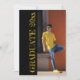 Este Formando moderno é para uma foto vertical ao lado do texto vertical. A parte de trás tem uma segunda foto e você pode personalizar o texto para um anúncio de graduação ou faculdade. Você pode personalizar o texto frontal para coordenar com uma cor na foto do seu Formando e alterar o texto para corresponder. Vá para Editar para acessar as ferramentas de personalização.