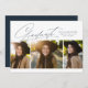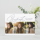 Este anúncio e convite para a graduação de três fotos é a forma perfeita de celebrar seu formando. Com um roteiro moderno e elegante "formando" em marinho e sublinhado, esse design também oferece espaço para personalização, incluindo nome, escola e ano. A parte traseira é um marinho azul correspondente com um padrão traço sutil para corresponder ao sublinhado na parte frontal e inclui espaço para texto de convite de festa de formatura. Este anúncio de graduação azul de marinho funciona bem para um formando de segundo grau ou um formando universitário. Outras cores e estilos disponíveis na coleção.