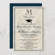Convite Formandos Clássico de marinho Monograma Wreath
