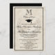 Preto com design de fundo do padrão de creme de mármore. A letra inicial do solteiro monograma clássico (sua escolha do nome ou sobrenome) é inteligente e atraente para a faculdade masculina ou feminina, escola profissional ou qualquer formando de nível. Este anúncio de graduação em estilo clássico, barato e barato, ou o convite de formatura em estilo clássico, é perfeito para formandos universitários ou formandos, para uma casa aberta, uma recepção casual de almoço ou uma festa formal. Celebrar a conquista monumental de um solteiro, de seus associados, mestrados ou doutorado. O clássico design apresenta um sutil emblema de coroa de louros, monograma personalizado, junto com um escrevendo elegante de script. Muito fácil de personalizar com suas informações. Escolha a sua cor escolhendo "personalizar mais" e alterando as cores do texto e do fundo na frente e no verso. Convidam-se para a graduação em estilo clássico formal e tradicional homens ou mulheres, raparigas ou rapazes de qualquer idade.