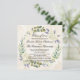 Cartão em forma quadrada com uma bela pintura em flor de aquarela em tons de branco, creme, azul e verde. Excelente para um formando feminino feminino feminino feminino feminino. Este anúncio de graduação em bege creme moderno e elegante / convite de formatura é maravilhoso para formandos de nível universitário. Design pintado clássico com adorável coroa natural de louros e fontes elegantes. Convite para formatura formal para tradicional e clássica.