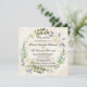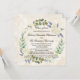 Cartão em forma quadrada com uma bela pintura em flor de aquarela em tons de branco, creme, azul e verde. Excelente para um formando feminino feminino feminino feminino feminino. Este anúncio de graduação em bege creme moderno e elegante / convite de formatura é maravilhoso para formandos de nível universitário. Design pintado clássico com adorável coroa natural de louros e fontes elegantes. Opção de excelente em vez de anúncios escolares oficiais. Convite para formatura formal para tradicional e clássica.