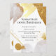 Um design versátil e fácil de personalizar com formas abstratas cintilantes em dourado e rosa marfim pastel que tem manchas de dourado falso e glitter espalhados por ele. Um traço vibrante de pincelada de aquarela dourada falsa aparece ao longo da borda superior e uma linha geométrica ao longo da parte inferior. Esses convites modernos, trendy e contemporâneos são ideais para festas de aniversário de qualquer idade ou marco; eventos de coquetel, noivado, casamento e jantar.