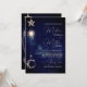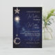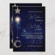 Lua Dourada no céu, brilha acima das palavras sobre um fundo azul. Um tema moderno para um convite de casamento na moda de noite celestial. Altere facilmente as informações para o seu próprio design personalizado. Mude facilmente as informações para o seu papel de carta de casamento personalizado. A partir de uma gama de papéis de carta de Casamento personalizados correspondentes dos Designs Finos de Chessie.