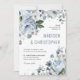 O convite para casamentos no inverno florais elegante apresenta cinzas elegantes e buquê de flor de aquarela azul gelada com vegetação arborizada. Entre em contato comigo para obter ajuda sobre a personalização ou se você precisar de outro produto com este design.